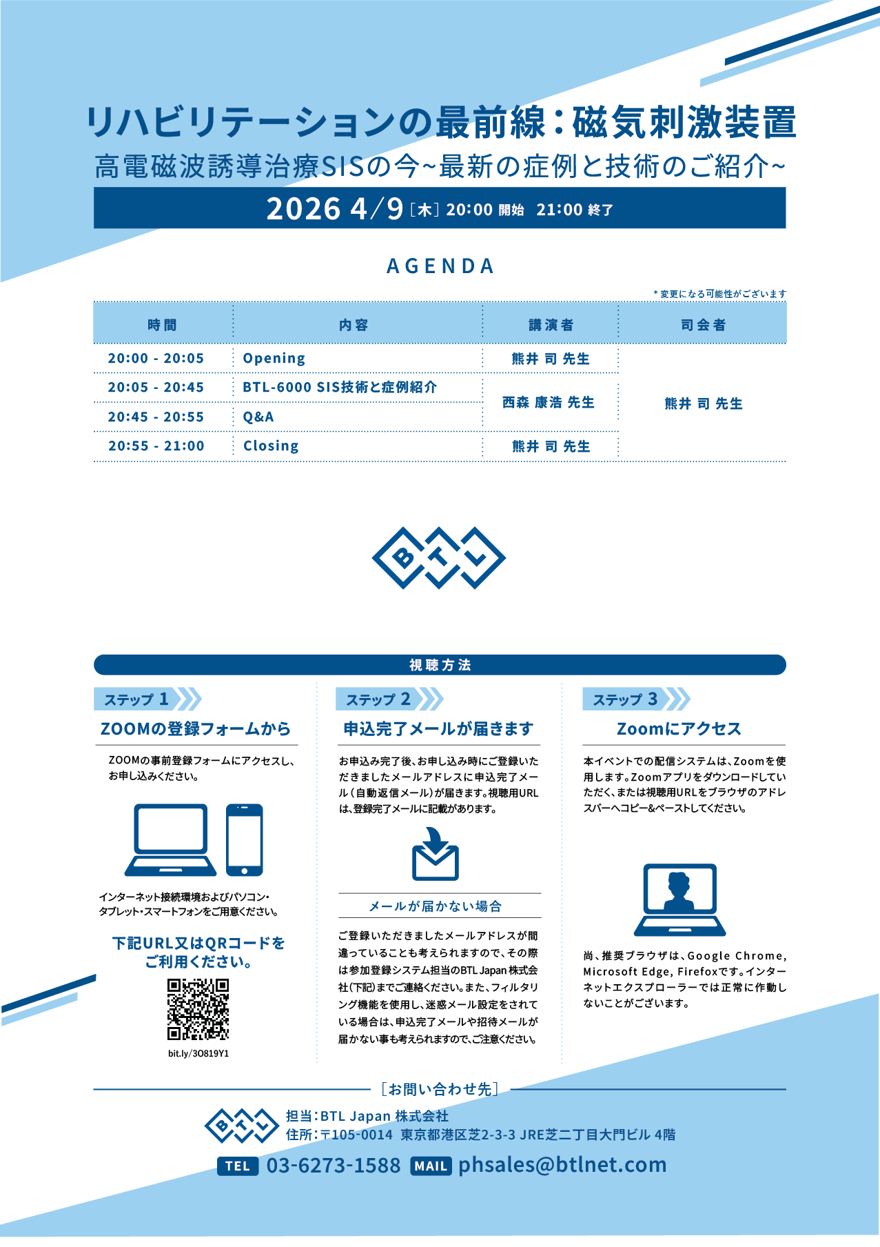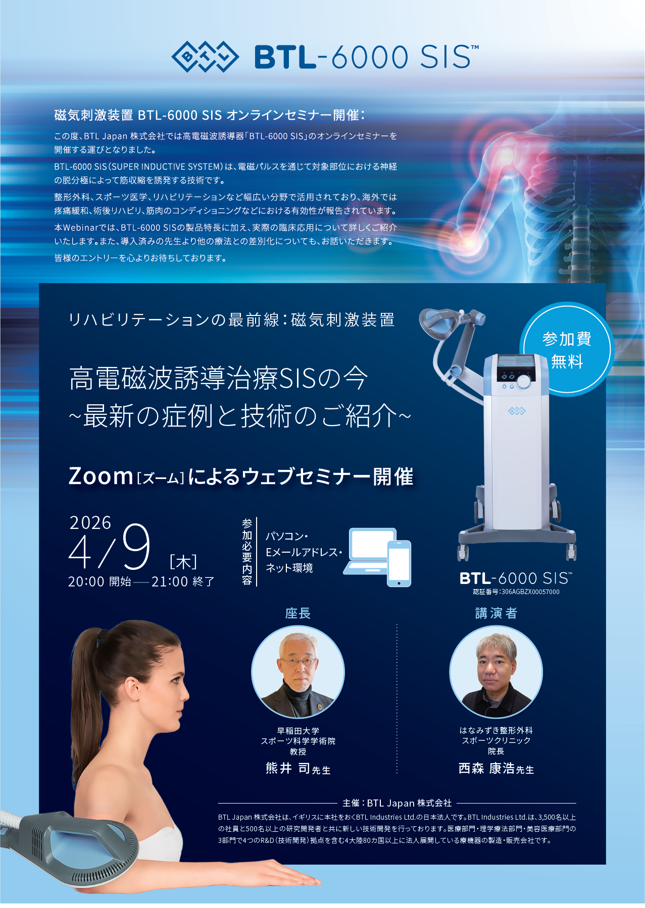 資料送付、訪問による詳しい説明及び機器デモンストレーションを行っています。BTL-6000 SIS™の導入を検討されている医療機関の関係者様はこちらからご相談ください。